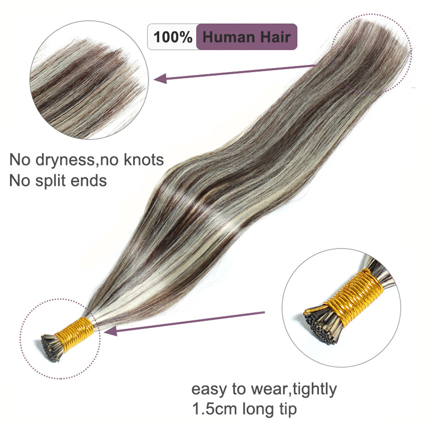 Piano Color 2/613 100% Raw Virgin Straight ITIPs Human Hair Extensions 100g Capsule Keratin I Tips Natural Human Remy Hair Extensions